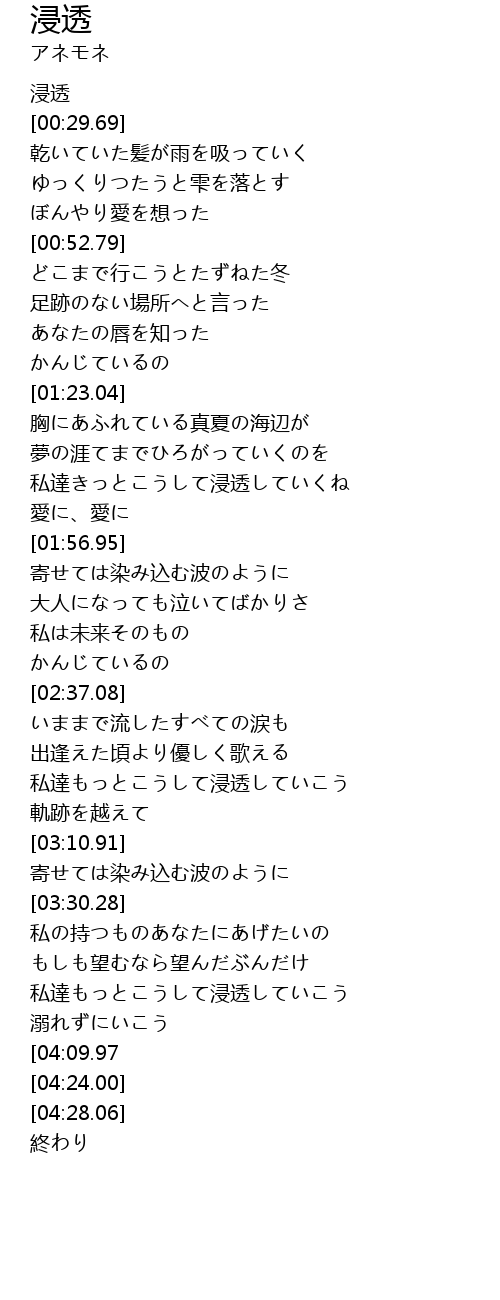 | [01:37.31] | 私達きっとこうして浸透していくね |