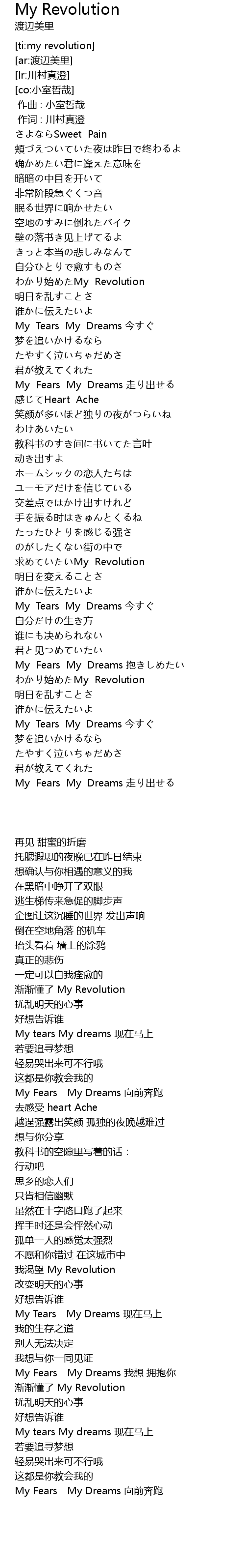 | [01:23.369] | 渐渐懂了 My Revolution |