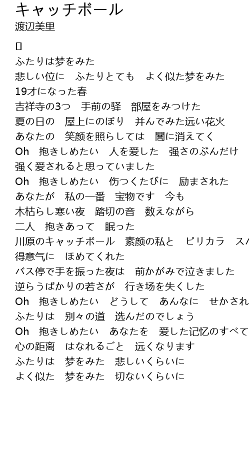 | Oh 抱きしめたい どうして あんなに せかされるように | |