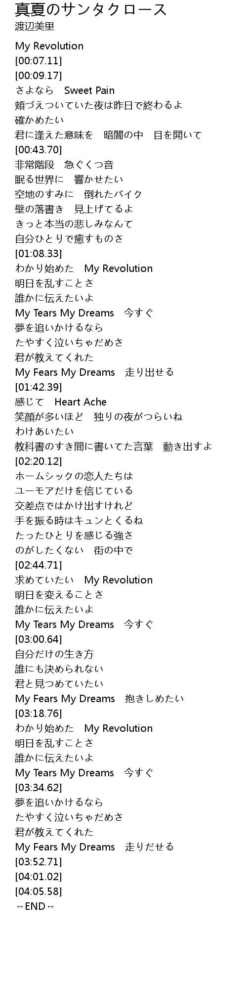 | [03:31.13] | My Tears My Dreams 今すぐ |