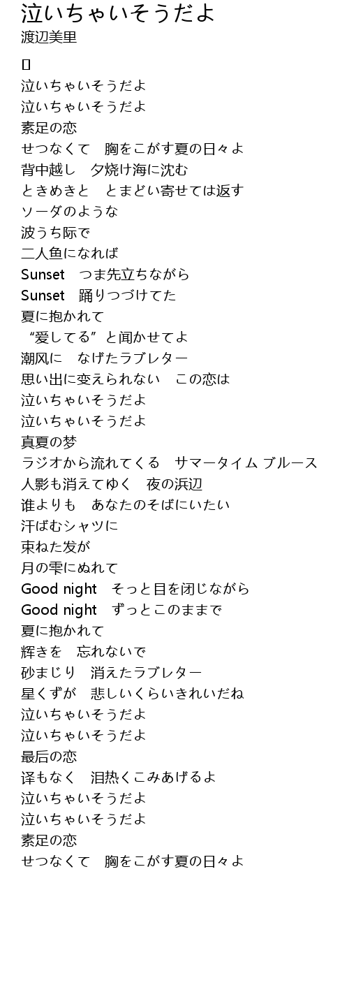 | 歌曲 | 泣いちゃいそうだよ |