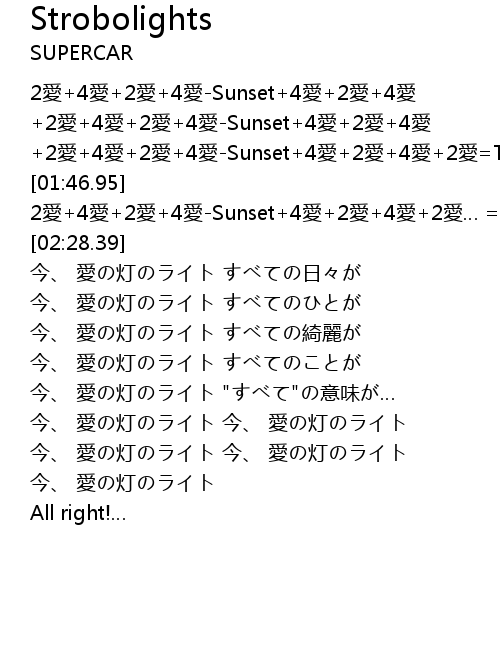 | [02:01.13] | 2 ai 4 ai 2 ai 4 ai Sunset 4 ai 2 ai 4 ai 2 ai True heart |