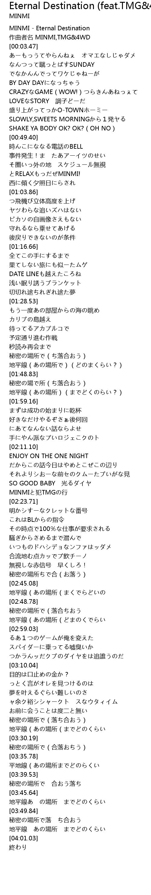 | 歌曲 | Eternal Destination (feat.TMG&4WD) |