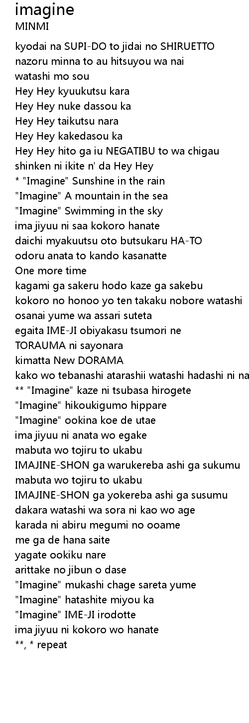 | ** "Imagine" kaze ni tsubasa hirogete | |