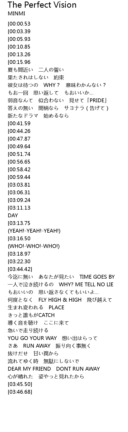 | [03:24.07][03:03.81][02:23.21][01:01.68] | GET UP & DANCE 見渡してみて |