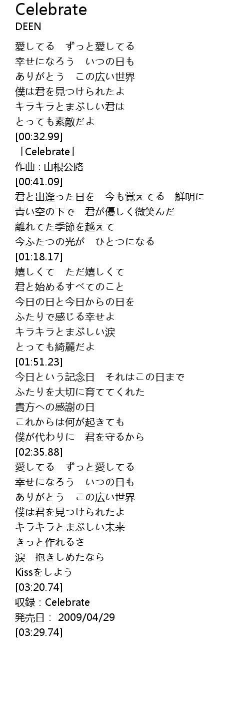 | [00:34.09] | 「Celebrate」 |