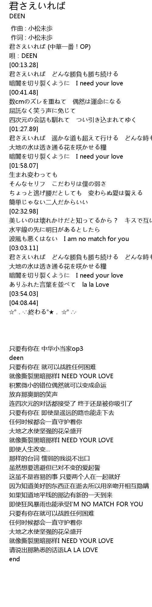 | [00:02.36] | 只要有你在 中华小当家op3 |