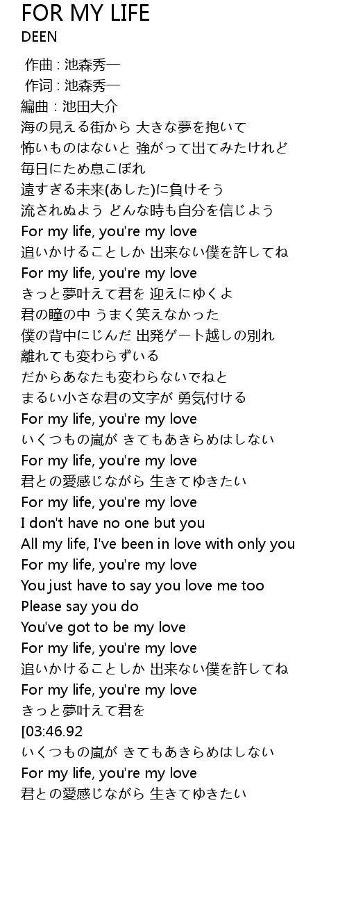 | [03:48.55][03:46.92] | For my life, you're my love |
