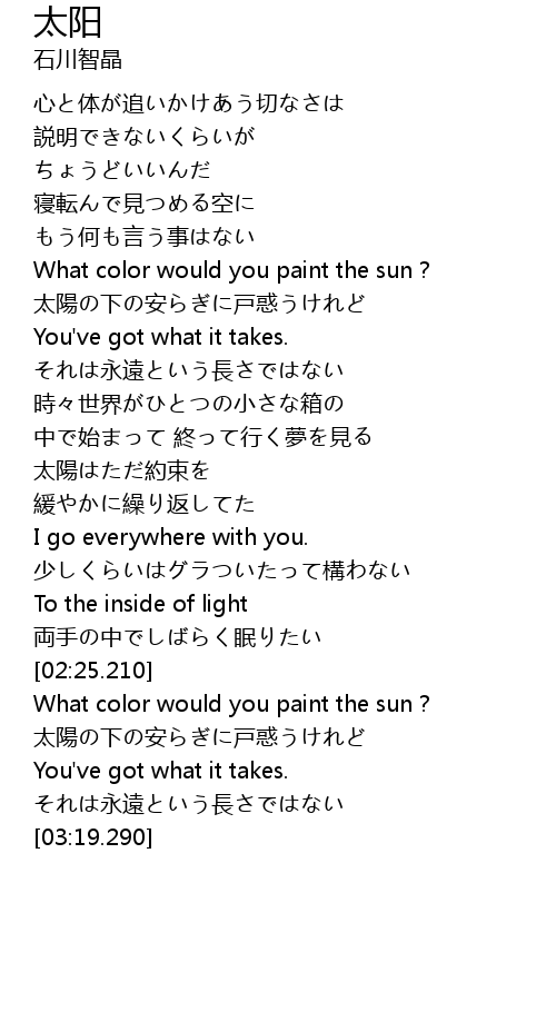 | [01:44.840] | 太陽はただ約束を |