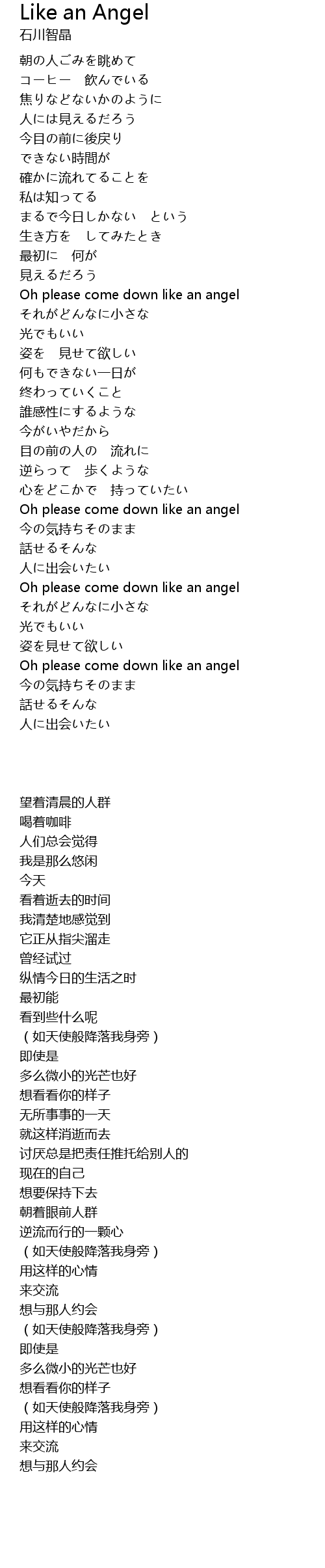| [01:08.86] | Oh please come down like an angel |