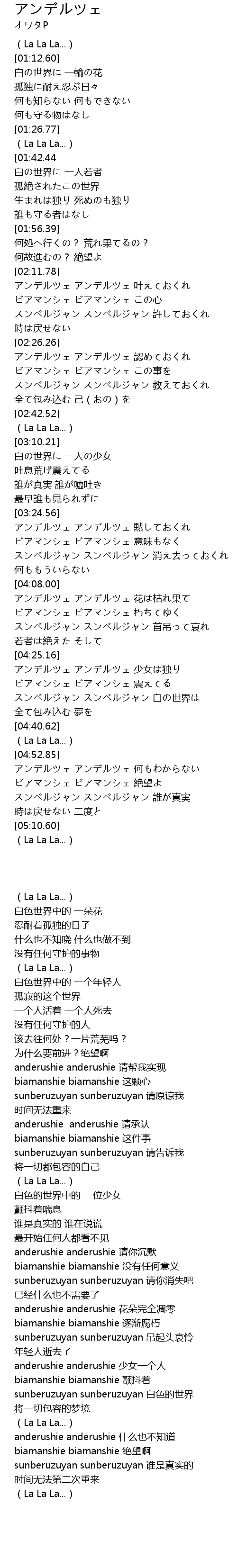 | [04:54.56] | アンデルツェ アンデルツェ 何もわからない |