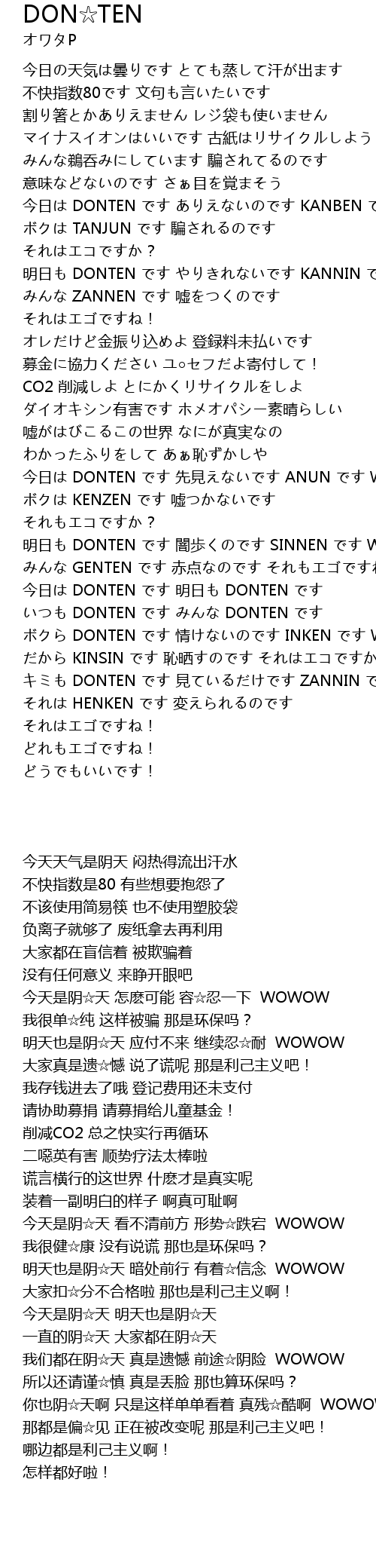 | [03:23.23] | DONTEN jian ZANNIN WOWOW |