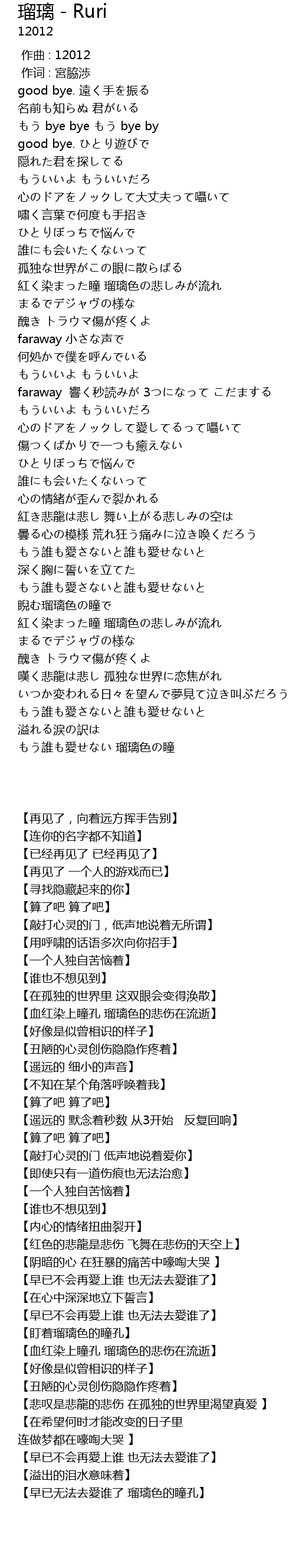| [04:15.700] | 【早已无法去愛谁了 瑠璃色的瞳孔】 |