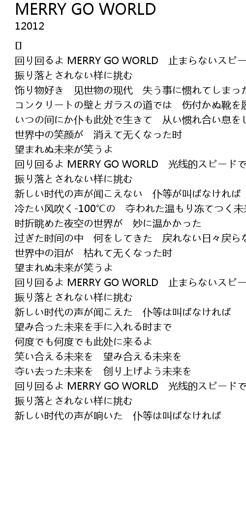 | 回り回るよ MERRY GO WORLD 止まらないスピードで | |