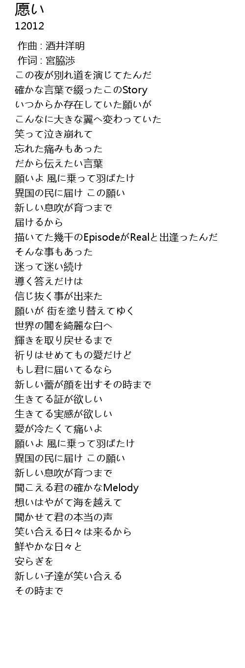 | 歌曲 | 愿い |