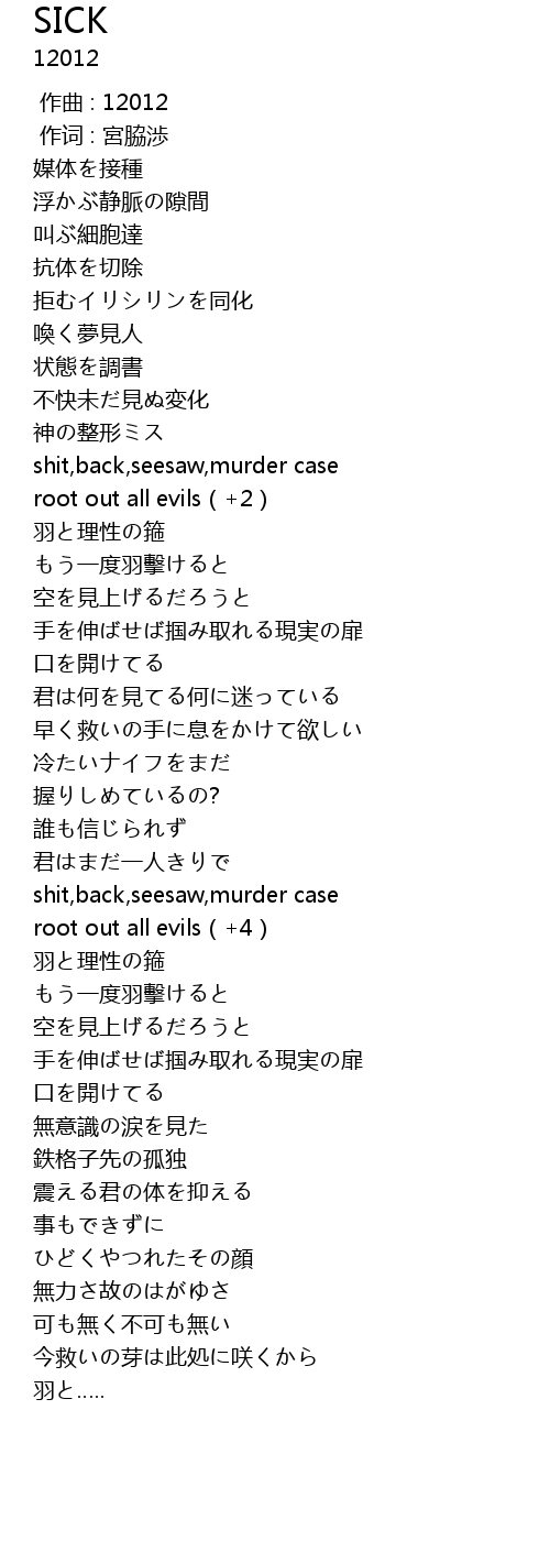 | [00:20.10] | 浮かぶ静脈の隙間 |