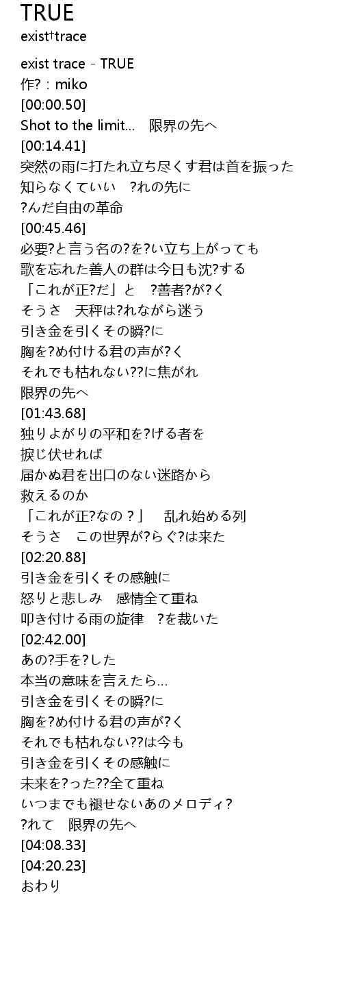 | [03:58.22] | ?れて 限界の先へ |