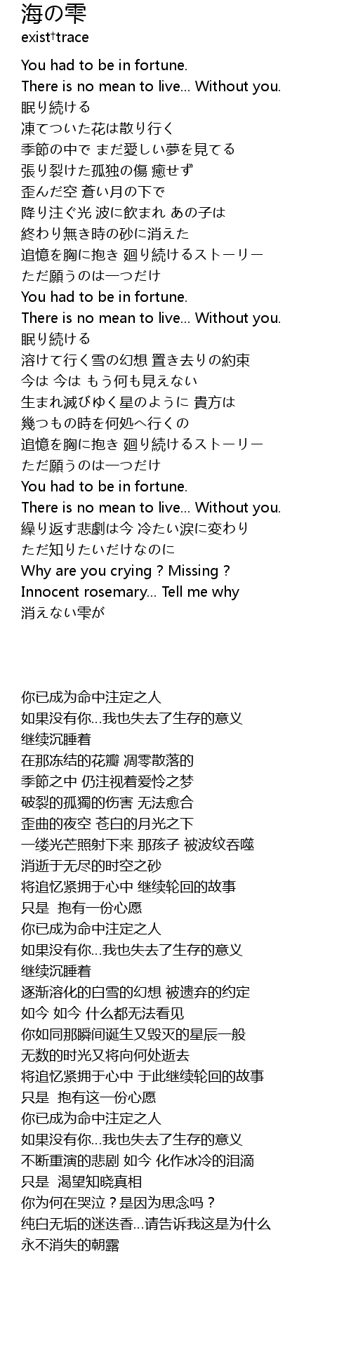 | [02:30.15] | 溶けて行く雪の幻想 置き去りの約束 |