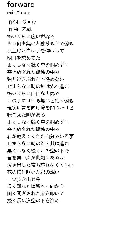 | [01:54.60] | 果てしなく続く空を掴めずに |