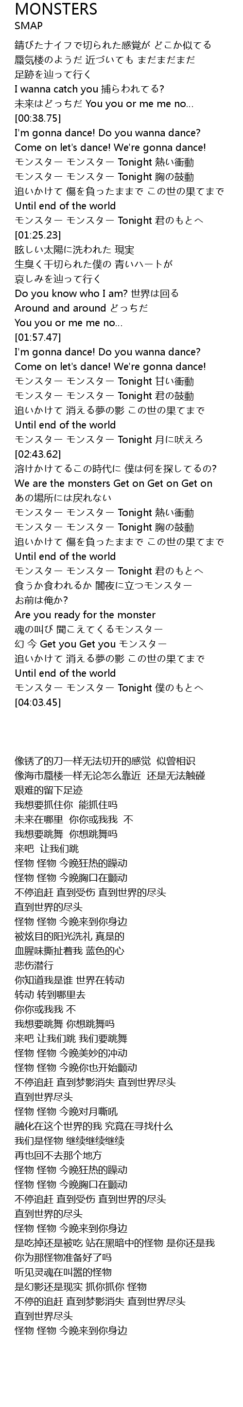 | [00:54.18] | モンスター モンスター Tonight 熱い衝動 |