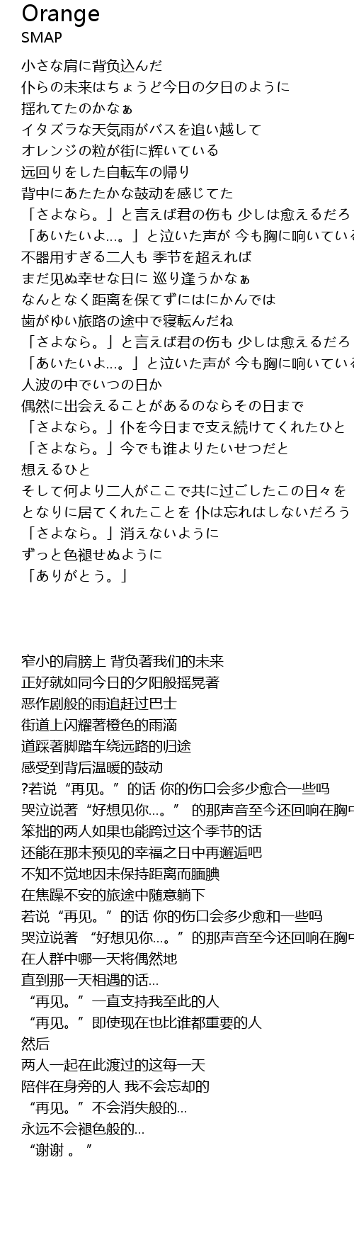 | [01:11] | ?若说“再见。”的话 你的伤口会多少愈合一些吗 |