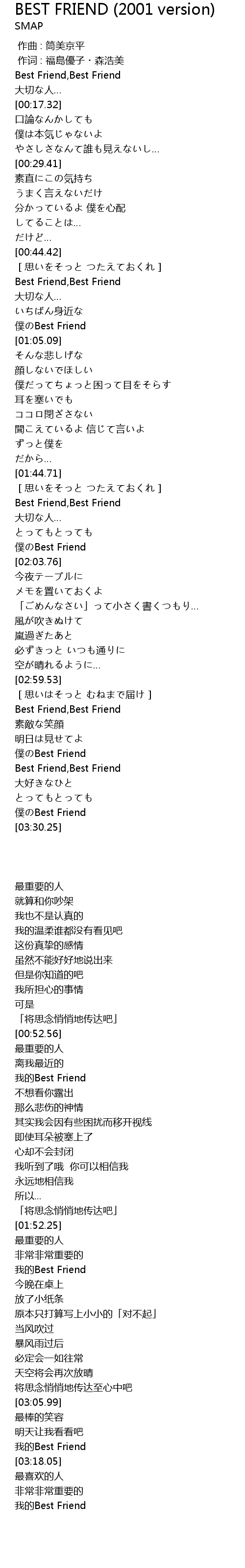 | [03:18.05] | Best Friend,Best Friend |
