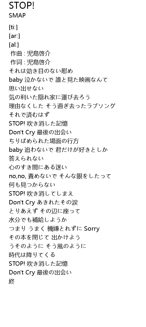 | [01:48.51] | STOP! 吹き消してしまえ |