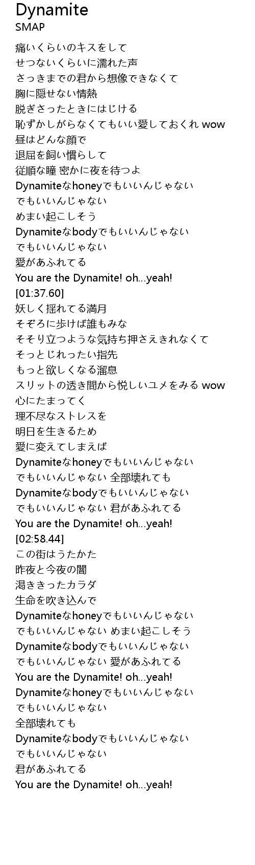 | [01:28.71] | You are the Dynamite! oh…yeah! |