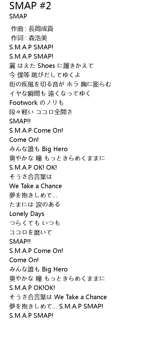 | [02:16.83] | meng bao S. M. A. P SMAP! |