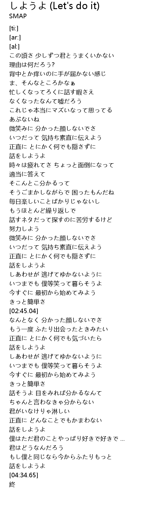 | [04:05.35] | 正直に どんなことでもかまわない |