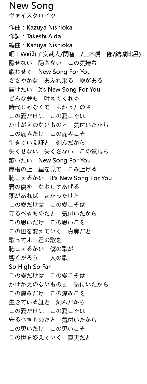 | [0:05.212] | 歌わせて New Song For You |