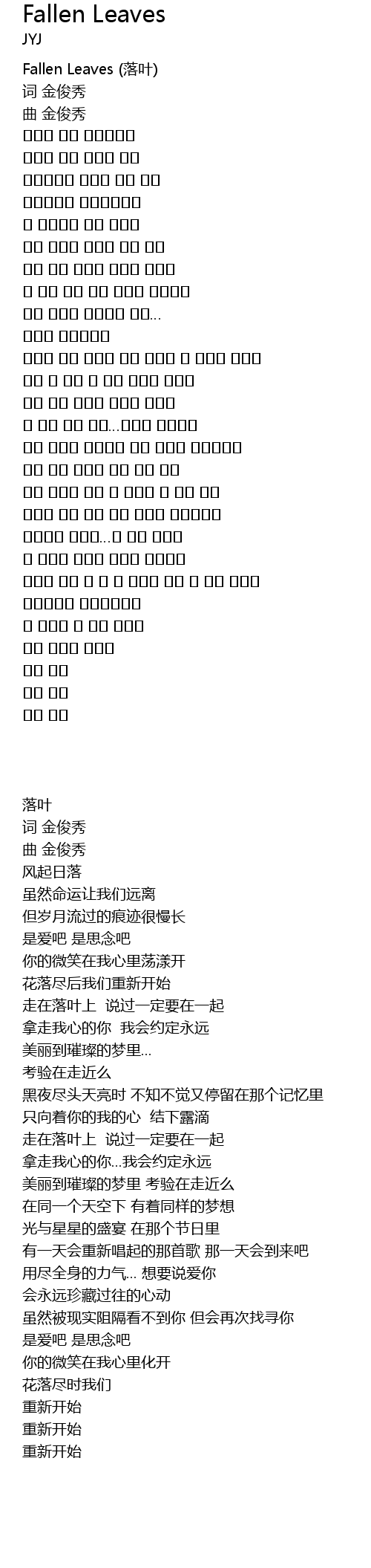 | 歌曲 | Fallen Leaves |