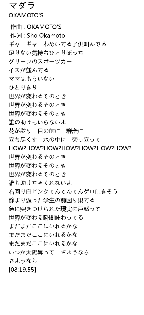 | [00:00.000] | zuò qǔ : OKAMOTO' S |