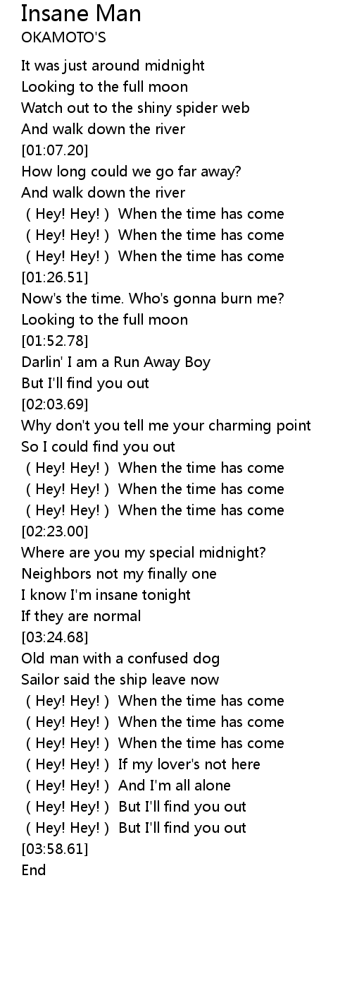 | [01:41.41] | Now's the time. Who's gonna burn me? |