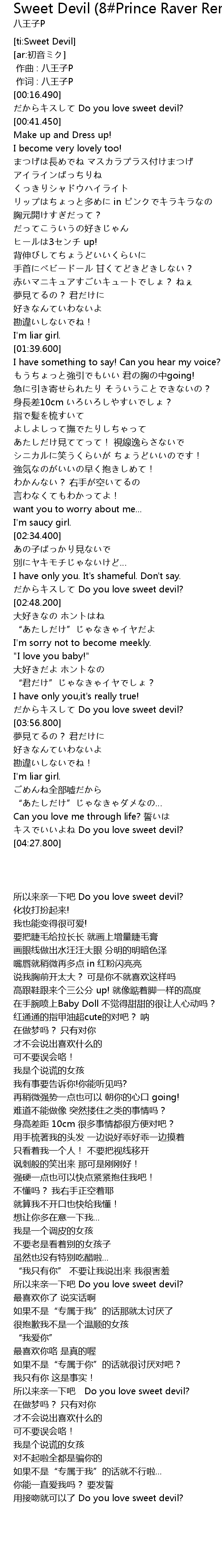| [02:45.060] | Do you love sweet devil? |