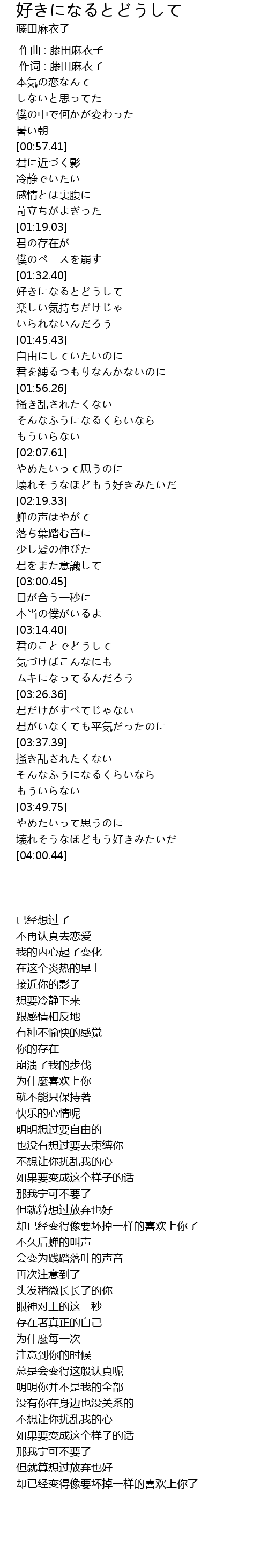 | [02:13.33] | 却已经变得像要坏掉一样的喜欢上你了 |