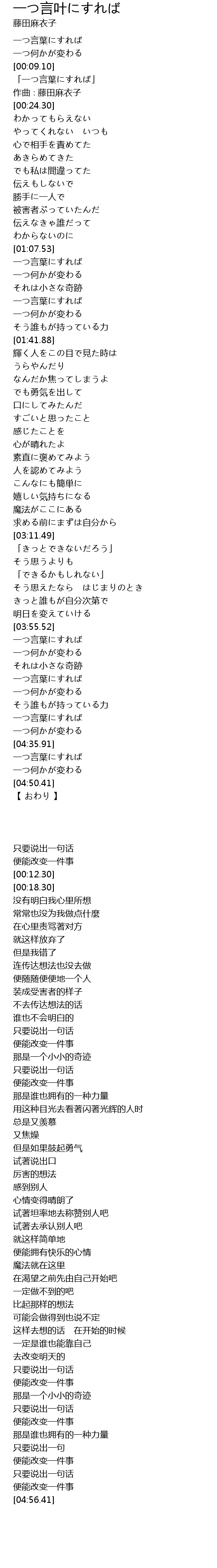 | [00:12.30] | 「一つ言葉にすれば」 |