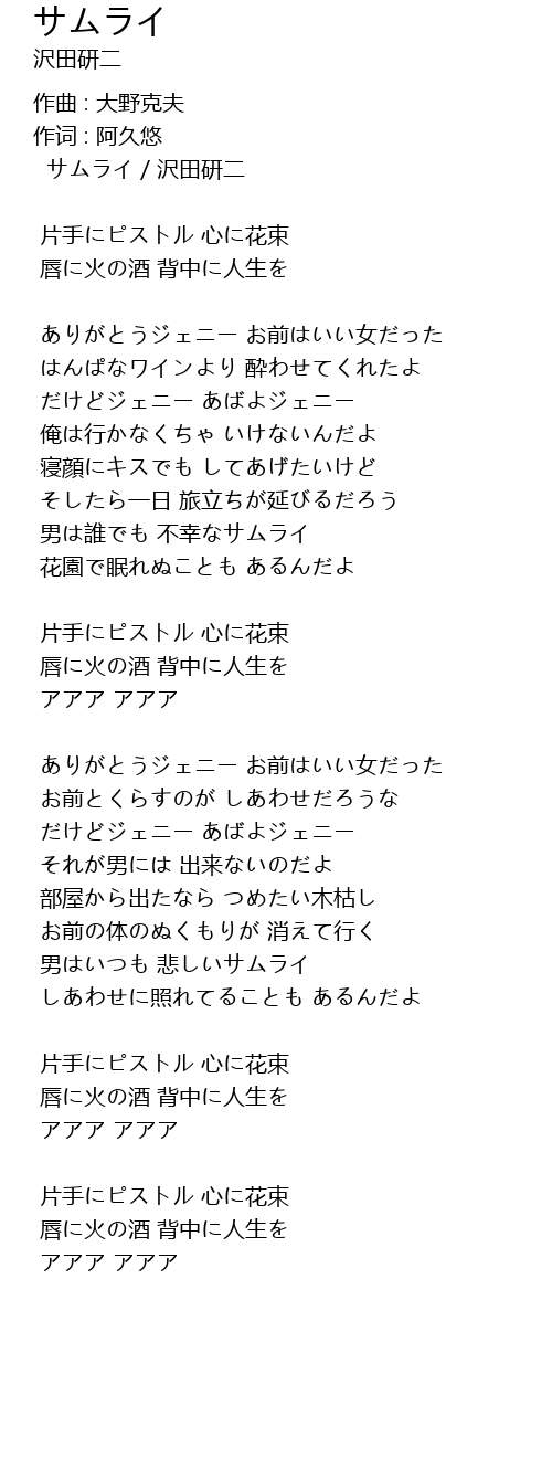 | 歌曲 | サムライ |