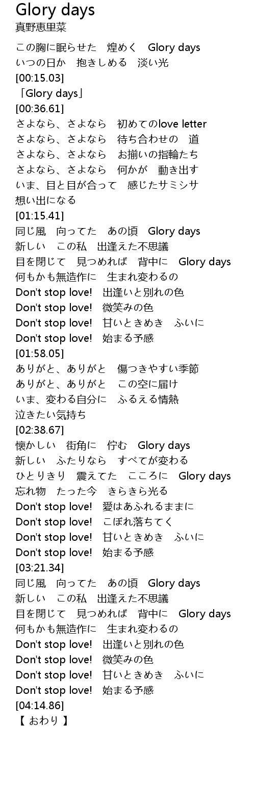 | [00:18.61] | 「Glory days」 |