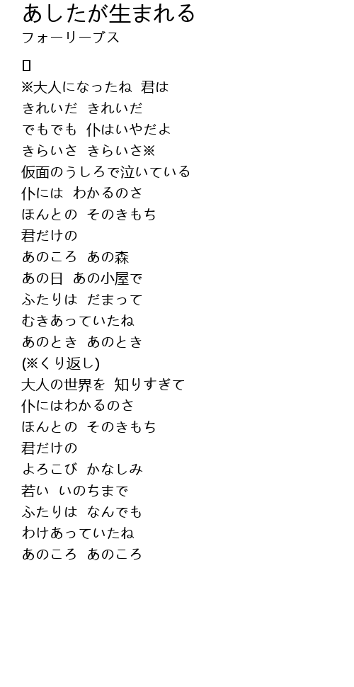 | 歌曲 | あしたが生まれる |