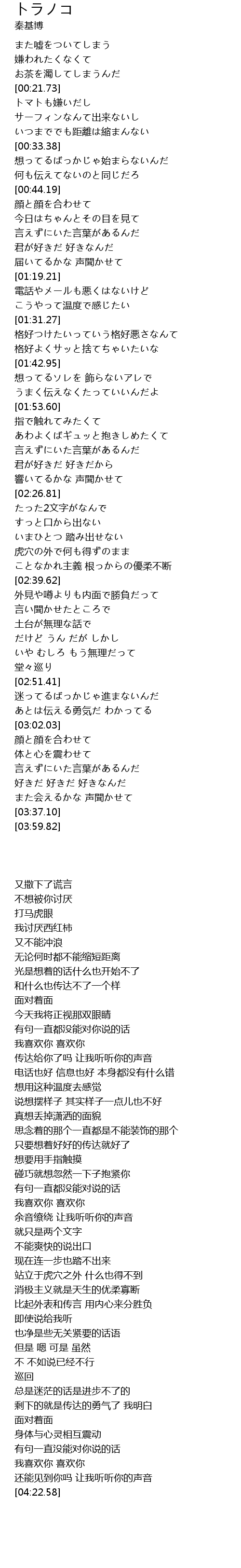 | [00:40.29] | 何も伝えてないのと同じだろ |