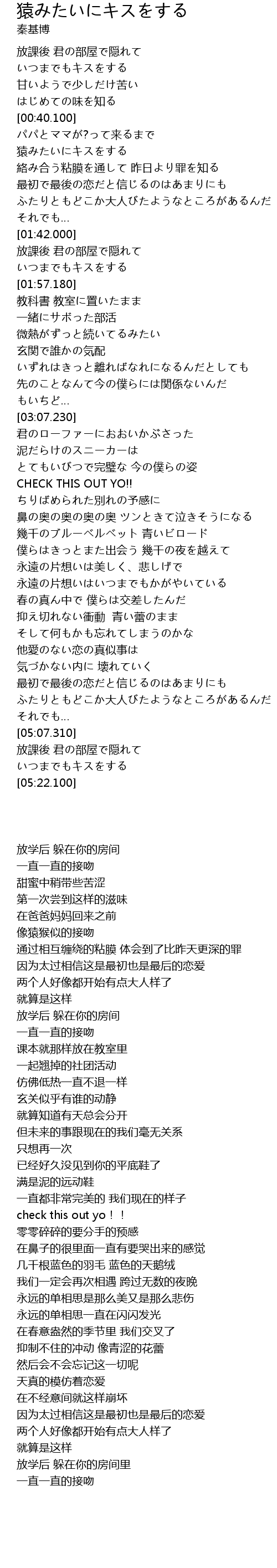| [01:00.080] | 絡み合う粘膜を通して 昨日より罪を知る |
