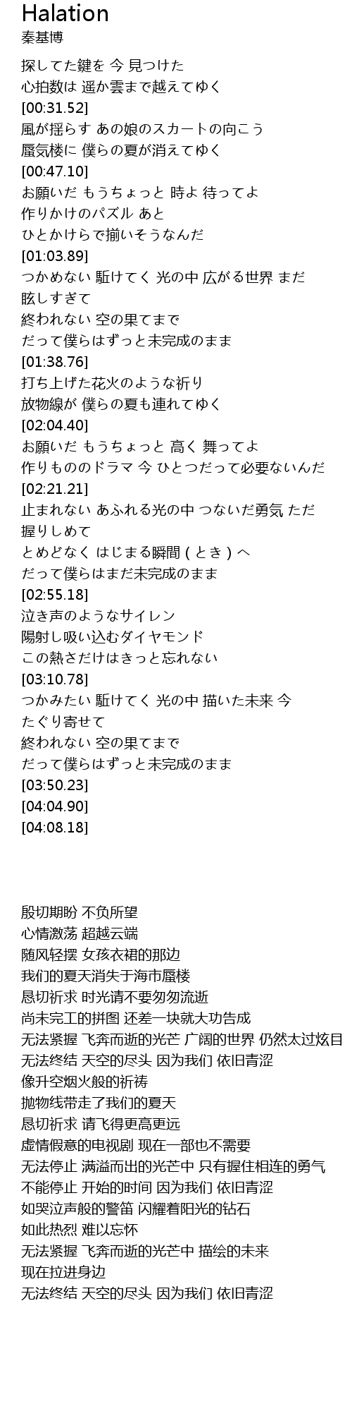 | [03:32.11] | 終われない 空の果てまで だって僕らはずっと未完成のまま |