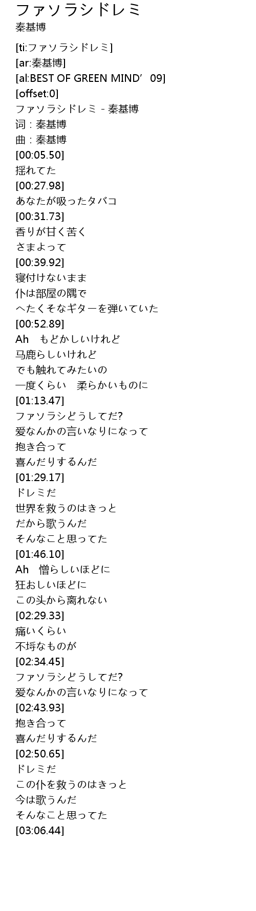 | [00:00.81] | ファソラシドレミ - 秦基博 |