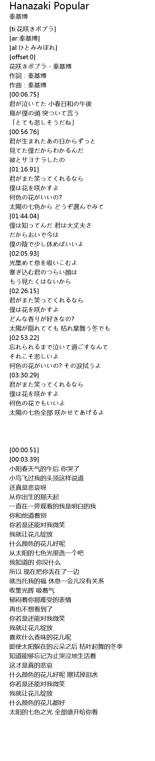 | [00:00.51] | 花咲きポプラ - 秦基博 |