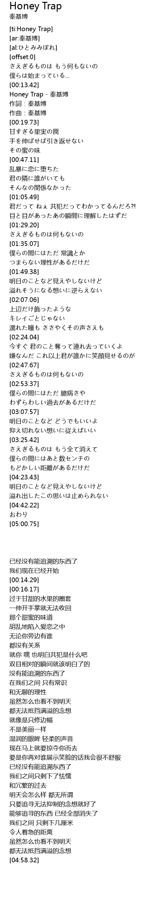 | [00:14.29] | Honey Trap - 秦基博 |