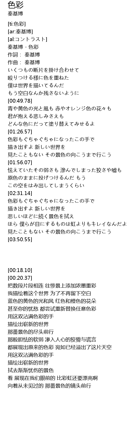 | [00:37.96] | 僕は世界を描いてるんだ もう空白なんか残さないように |