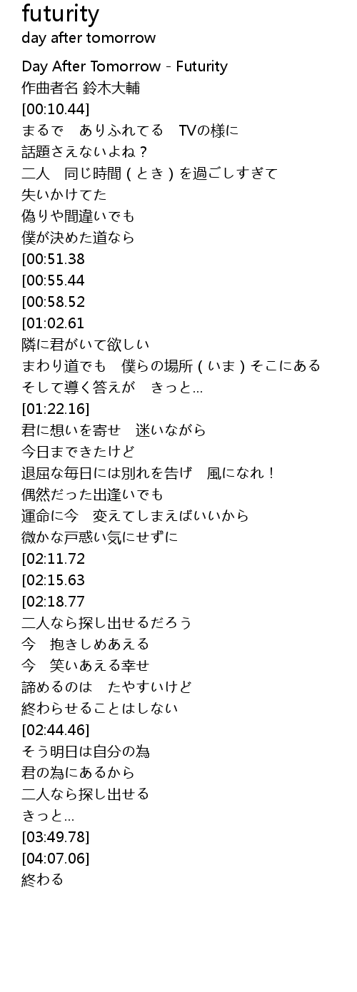 | [00:00.00] | Day After Tomorrow - Futurity |