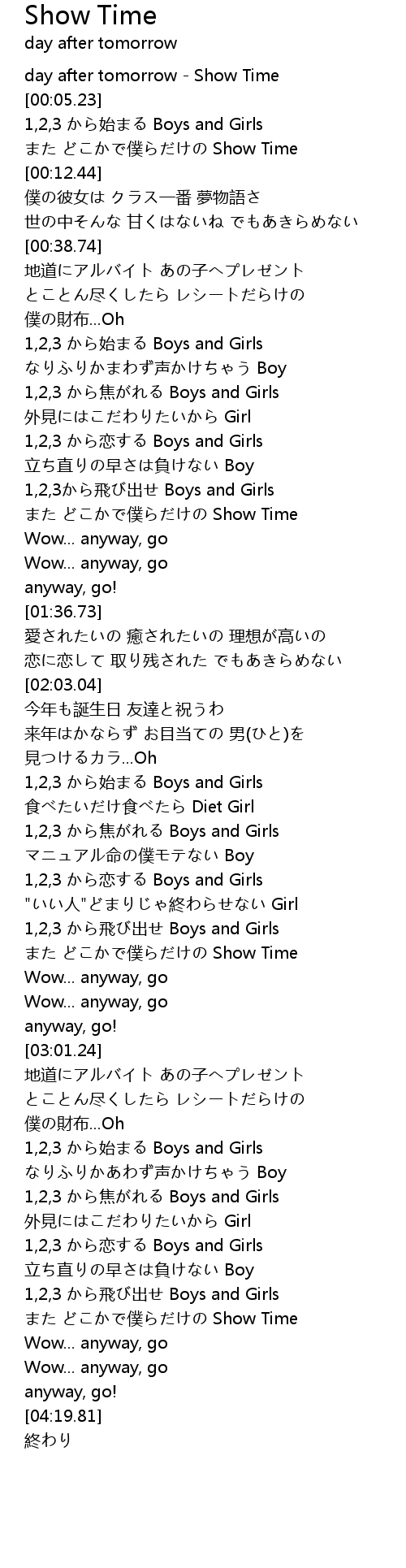 | [00:00.00] | day after tomorrow - Show Time |