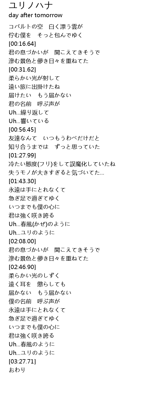| [03:23.41] | Uh...ユリのように |